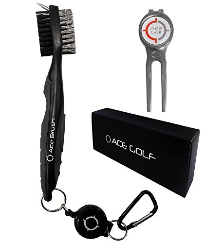 Ace Deluxe Golf Club Brush and Groove Cleaner in Sleek Black, 2 Ft Retractable Zip-line Aluminum Carabiner, Lightweight and Stylish, Easily Attaches to Golf Bag - Includes Divot Tool and Gift Box Reviews