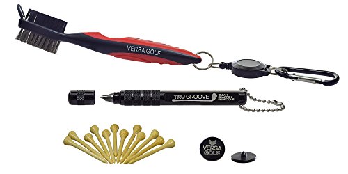 Feature: VersaGolf Golf Club Cleaning Brush and Groove Tool COMBO - Keep Your Clubs in Top Shape - Improves Backspin and Ball Control - FREE Ball Markers and 12 Bamboo Tees - Use on Woods and Irons - Gift Set